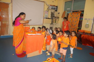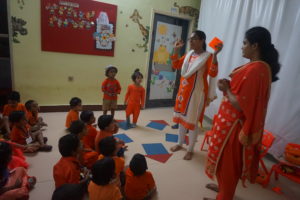 To mark the occasion and to ensure that all children are actively participating, we encouraged them to dress in orange. They rose to the opportunity and turned up in beautiful shades of orange. To complement them, we decorated the classrooms with orange as well! Furthermore, throughout the day, children played fun games devised around the color. Name An Orange Object and Touch Orange Objects were a few of the many games they played.