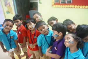 On 14th July, we have conducted ‘Funny Faces’ event in our School, where kids and teachers enjoyed a lot. All the kids got painted their faces like animals and cartoons of their favorite. “The kids came enthusiastically to get painted, with their favorite animals”, said a PP-I teacher.