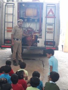 Technology might have replaced human in many fields but still, we are dependent on a few people who take care of our neighbourhood like, fire services, postal services, and banking services. To showcase the importance of our community helpers, we at Presidency kids conducted a field trip for PP2 students on 24th January 2020, to visit a Fire Station in the school neighbourhood. Fire Brigadier Mr Sanjay clearly explained the process of extinguishing the fire and also gave some preventive measures like