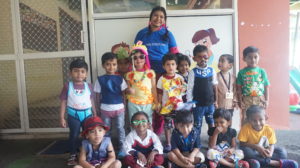 Maira wore a super weird and cool hairstyle that sent all children on a screaming, cackling spree. The teachers thoroughly enjoyed just watching each of their students turn up wackily. Many kids rocked the day but Devasena, Pravasthi, Abdul Ikram and Shourya went all out. They walked in with all rare costumes! The surprising part was that they maintained it nicely until the end of the photo session!