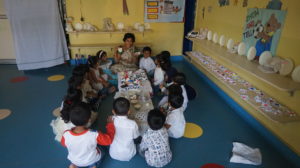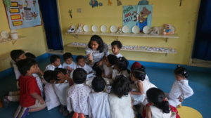 The games and activities for the day included flower crafts and cotton pasting. They made flowers using white papers and ice-cream sticks. Snack time was also extra fun on this day because they brought various snacks to share with their classmates. As a part of the activities, children explained one white-coloured item each. From teeth to milk powder, everyone chose something interesting and had a lot of fun.