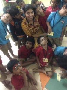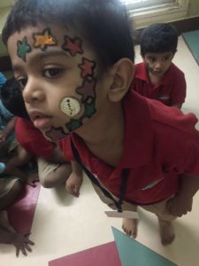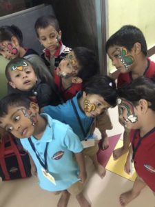The teachers used bright colors to paint the faces of our kids with animals, birds, and cartoon characters. Every child was eager about getting his or her face painted at the earliest, and we saw the same eagerness in our teachers too.