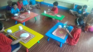 We have conducted the activity on 16th Oct, where kids learned how to set a table. “I learned how to spread the mat and also the position of different things like plate, spoon, knife, fork, bowl and glass”, one of the kid expressed. “Kids listened to the class interestingly and learnt how to arrange a dining table when relatives come home”, a teacher from PPII said.