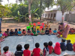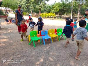 Children were mesmerized to see the serene beauty of nature while taking a walk through the lush green mango and guava trees. Teachers showed them different types of plants, trees and the beautiful landscape around. They explained the importance of taking care of our environment. Children thoroughly enjoyed the fruits out in the garden. Teachers made them play different games like musical chairs, basket game and enjoyed their snacks.