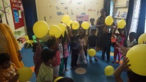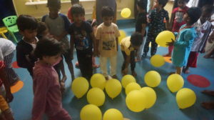 Show and tell activity, balloon game and fire in the mountain were the other attractions of the event. All the tiny tots came in their pyjamas and participated in all the activities with full enthusiasm. Importance of brushing twice a day and reading storybooks before going to bed was taught to the kids.