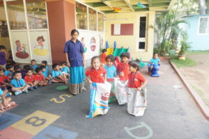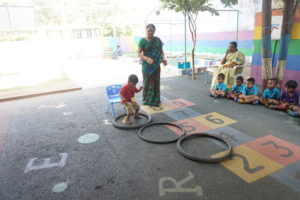 Hoopla! It’s time to have joy and sweat. To develop gross motor skills in our tiny tots and make them strong, we conduct ‘Passing the Hurdle’ event.