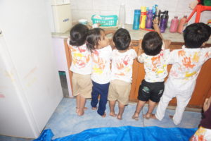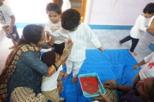 “Kids were very excited to put their palm prints on their friend’s shirt,” one of our playgroup teachers said. Of course, all kids love getting their hands dirty and when they are given permission to do so, they are overwhelmed with utmost joy!