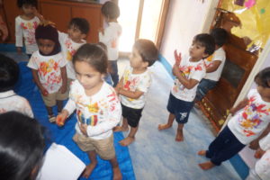 In this article, we are going to talk about Paint Your Friend’s T-shirt activity that we conducted at our school on 10 November 2017. To incorporate the idea of having fun with friends and creating beautiful memories, we invited all our tiny tots to pain their friend’s T-shirt using their palms. We also taught them about different colors through this activity because we understand that the best lessons are learned through experiences that bring happiness.