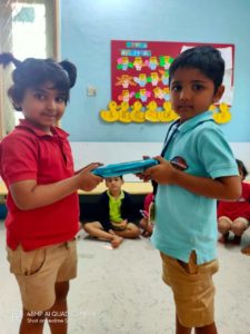 Mahathi of PP1 innocently asked her mother to buy gifts for all her friends, not just one, many parents like Mrs.Roopa and Mrs. Soujanya expressed that their kids enjoyed the day and were very happy to get gifts from their friends. It is only through sharing that we grow, make friends, develop empathy, and build social skills. Thus, we must start the lessons early. We are glad we conducted this event and impacted our little ones. We hope that all the parents follow this and help the kids learn about sharing.