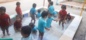 The play area in the premises turned into an awesome beach paradise for our little ones on 1st March 2019. They enjoyed themselves thoroughly and the teachers reminisced on their childhood as they saw their students splash around and celebrate. All the smiling faces headed to the pool in excitement and played to their hearts’ fill. Then they also collected seashells and made sand castles. What’s more, they chilled under the umbrellas as and when they got tired or wanted some relaxation. The teachers arranged a few snacks such as bananas and watermelons for them to munch on while playing. The children were having so much fun that even the support staff couldn’t help smiling and enjoying just by watching them.